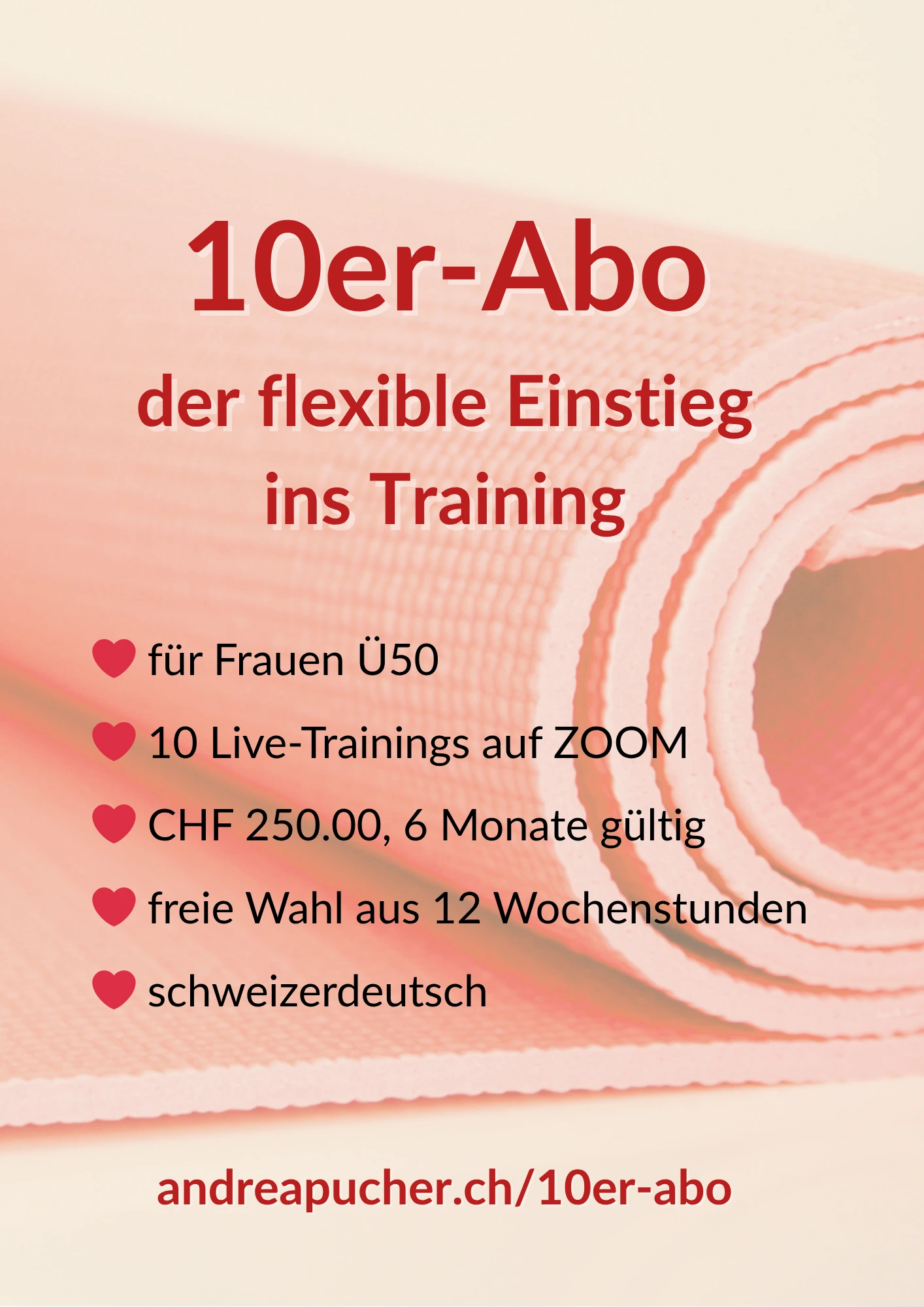 Wer möchte das nicht! Seit über 30 Jahren unterrichte ich professionell und mit grosser Leidenschaft Bewegungskurse. Und auch mein Körper wird älter und auch mir fällt es nicht immer leicht, Veränderungen anzunehmen.
